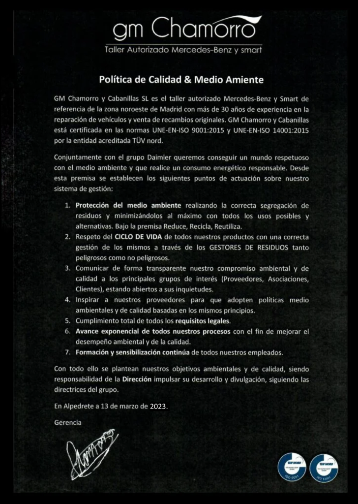 •GM Chamorro como empresa comprometida con el entorno y con una gestión ambiental exhaustiva y respetuosa con el medio ambiente, trata de ser un referente en lo que respecta a talleres de reparación de vehículos.